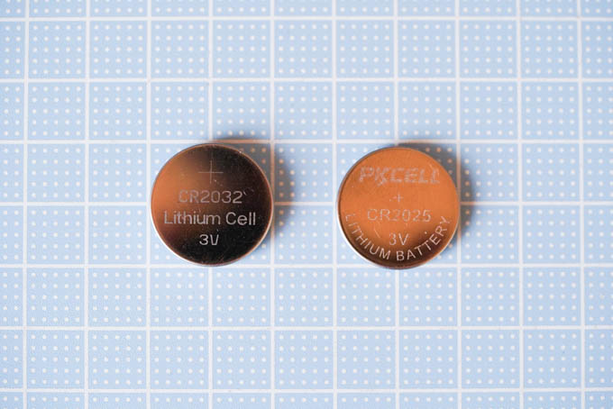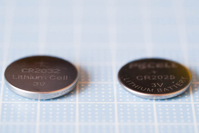 左が正しいCR2032、右が誤ったCR2025。こんなに厚みが違うのですよね・・・。