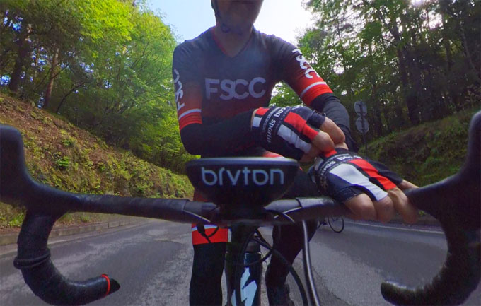 富士ヒル本番スタート直後の様子。パワー表示が出ない時計を気にしています・・・