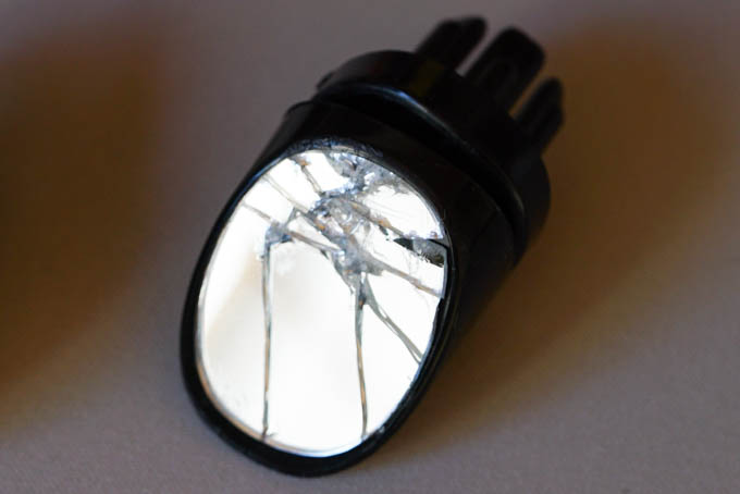 安物ミラーにありがちなアルミ蒸着ではなくガラス製なので小さいくせに非常に見やすいのですが、割れやすいという欠点もあり、残念ながら、昨年の巨大事故によって漏れなくご臨終となってしまいました・・・(合掌)