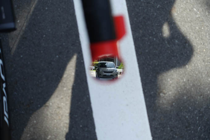 実際の走行では目視確認が大事ですが、クルマや自動二輪と同じで、バックミラーがあると後方確認が大幅に楽になります。