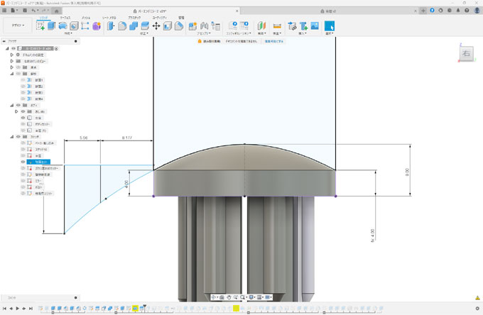 - 半球の表面(=曲面)を使って、台座とミラー部分の2つに切断する