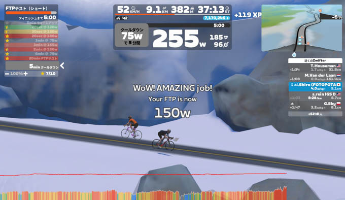 こうして、地獄のテストで得られた新しいFTP値をもとに、明日からのトレーニングの練習強度が上がり、新たな地獄の日々が始まるのです・・・。