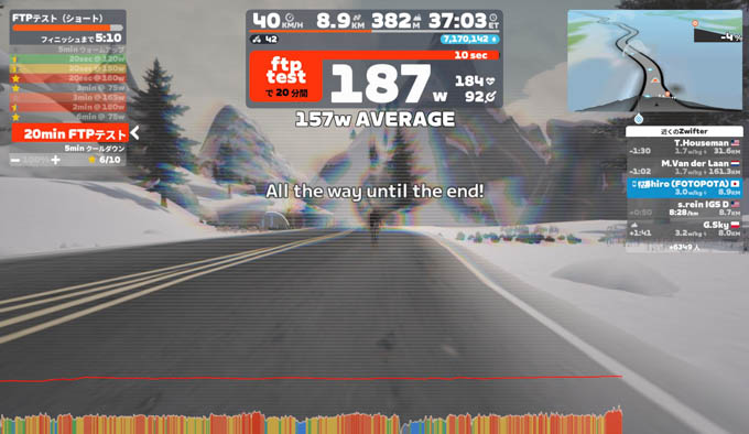 なぜなら、月初めには「今月のFTP」を計測しなくてはならないからです・・・(><)