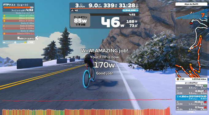 まぁ、無難にFTP=190W体重=62kgで1時間28分あたりを目標に頑張りましょう。