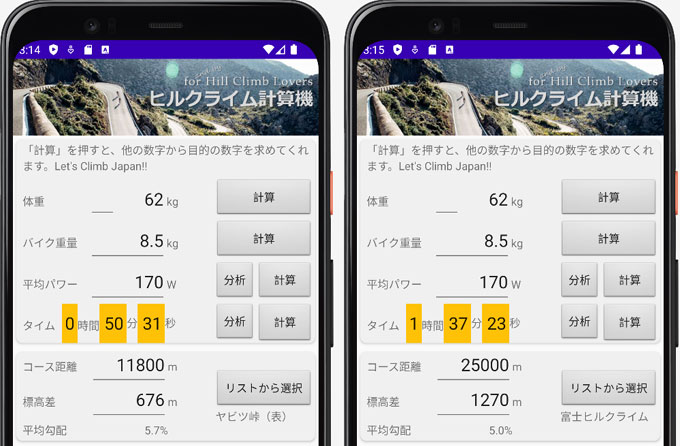 左がヤビツ、右が富士ヒルのタイム予測。キビシイ~